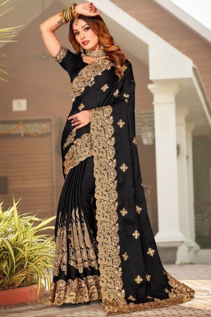 Orange Vichitra Silk Zari Embroidery Saree Party Wear