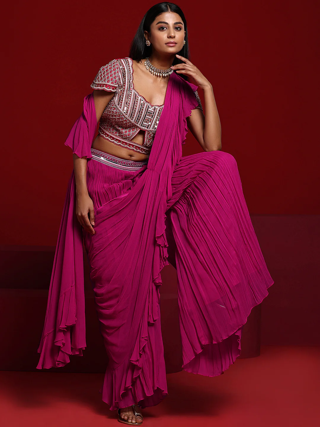 Art Black Embroidered Georgette Dhoti Saree
