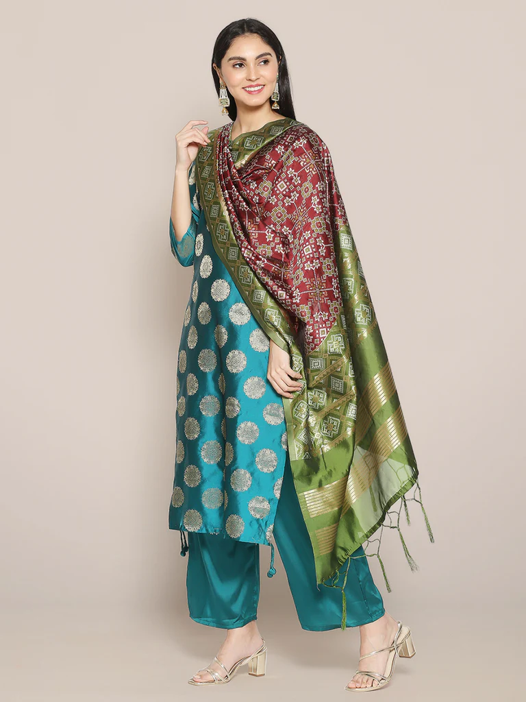 You can team this dupatta with a kurta set, anarkali, lehenga or skirt and complement your look with traditional style danglers to look fabulous.