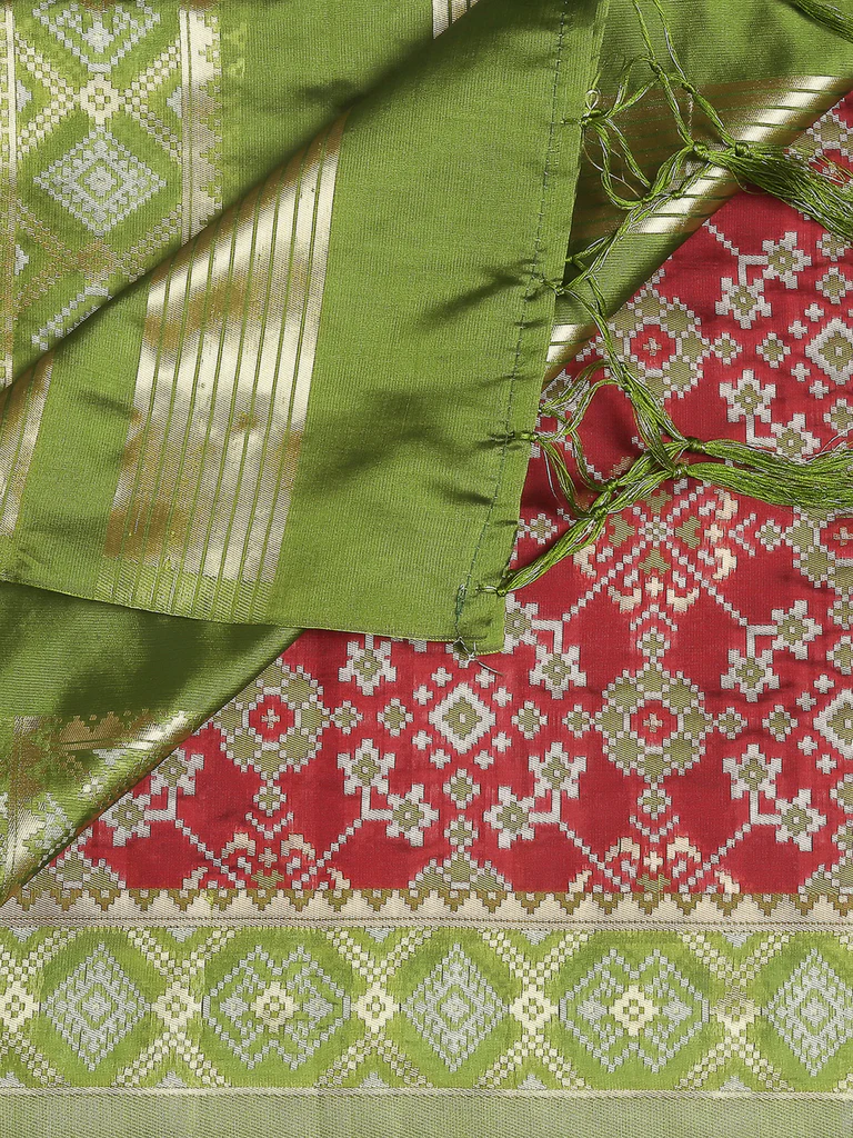 Add a touch of elegance to your wardrobe with this exquisite piece of beautiful Banarasi Silk Dupatta. Swathed with elegant Patola style weaving all over, this classic stunner is a must in your ethnic collection.