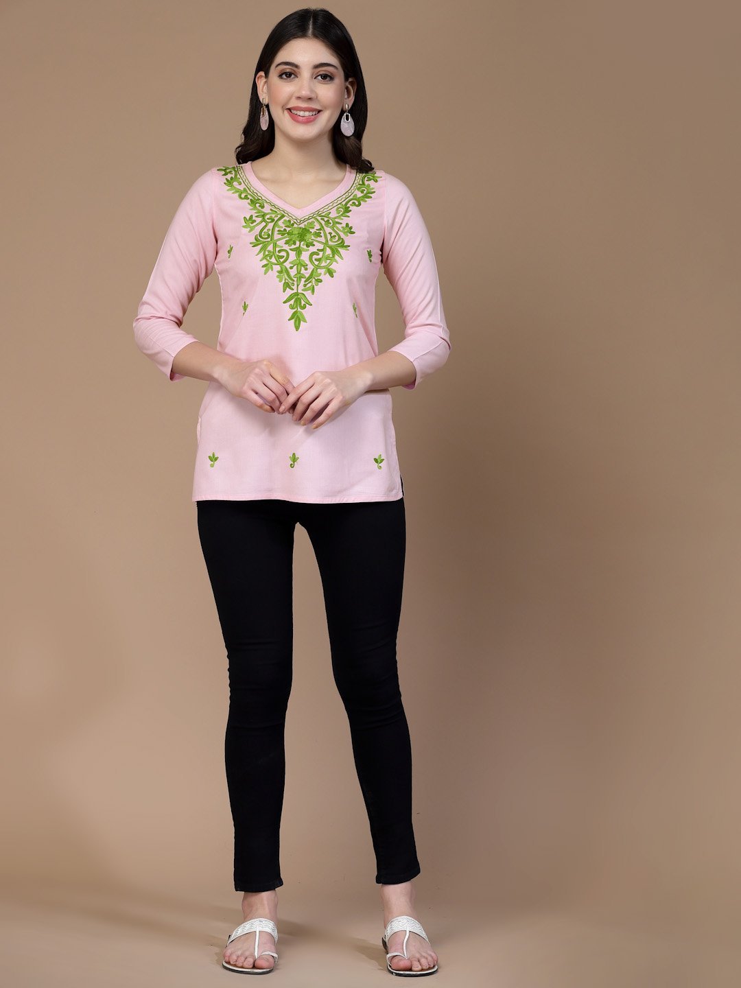 - Embroidery: Kashmiri Aari Using Green Color Cotton Thread
